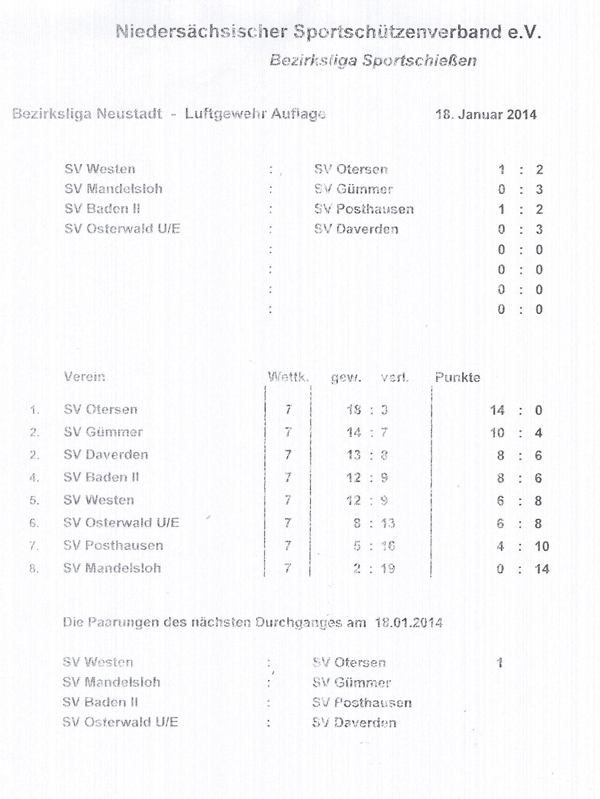 Luftgewehr Auflage fand am 18. Januar 2014 im Schießsportcenter „Zum Jagdschloß“